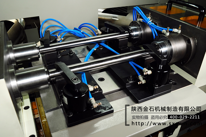 導(dǎo)向套:左側(cè)導(dǎo)向套軸向固定; 右側(cè)導(dǎo)向套氣動驅(qū)動伸縮,推動工件貼緊兩導(dǎo)向套