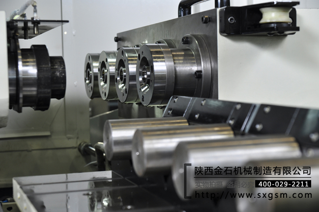 工件裝夾:依靠尾頂及導(dǎo)向套上的錐盤,以工件兩端的倒角準(zhǔn)確定位工件;尾頂液壓伸縮夾緊工件。" />