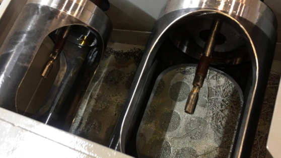 在鉆削完成后更換拉絞刀具及輔助減震裝置,其裝夾方式與鉆削一致。更換刀具方便快捷,因拉絞與槍鉆加工體系的排屑方向相反,在工件的孔出口方向增加了拉絞排屑箱。用于收集拉絞過程中產(chǎn)生的鐵屑及排出切削油。