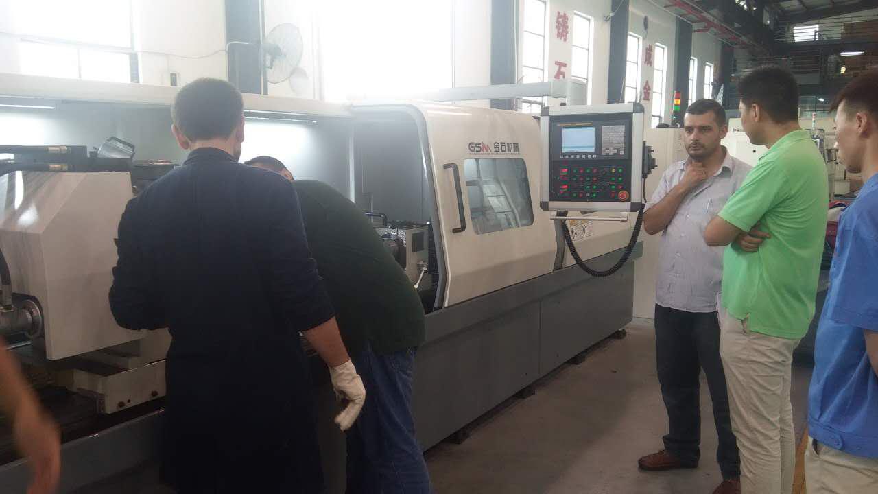我司開始從機(jī)床的設(shè)計(jì)、嚴(yán)謹(jǐn)?shù)难b配工藝,設(shè)備的零件生產(chǎn)、外觀,我們都謹(jǐn)慎對待一絲不茍??蛻粼谖夜就赓Q(mào)部領(lǐng)導(dǎo)的陪同下,詳細(xì)參觀了我公司裝配線,并親自操作試用了機(jī)床。