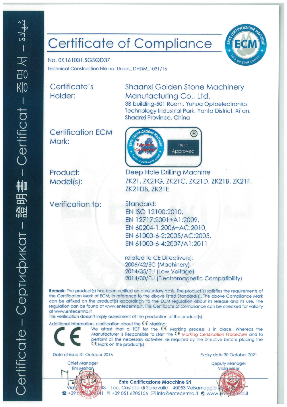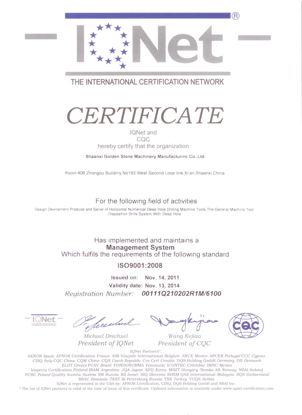 質(zhì)量管理體系認證證書(英文版) 質(zhì)量管理體系認證證書
