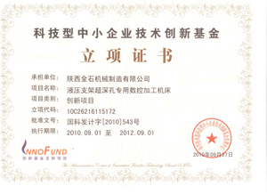 創(chuàng)新基金立項證書